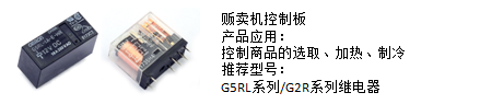 1)產品推廣一:售貨機控制板,推薦使用歐姆龍功率類繼電器,主要實現販賣機控制商品的選取、加熱、制冷等功能。