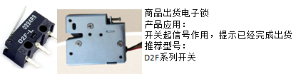 3)產品推廣三:商品出貨電子鎖,推薦使用歐姆龍小型微動開關,主要是在出貨完成后給信號主機,體積已完成出貨: