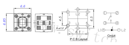 帶燈輕觸開關(guān),一種帶有燈的輕觸開關(guān),在沒有動(dòng)作力的時(shí)候,開關(guān)沒有燈的顏色。當(dāng)有動(dòng)作力實(shí)施的時(shí)候,開關(guān)就會(huì)有相應(yīng)的顏色。帶燈輕觸開關(guān)有單色燈和雙色燈可以選擇。LED燈的顏色可以選擇紅色、橙色、黃色、綠色、藍(lán)色、雙色等。一般帶燈輕觸開關(guān)的壽命最低達(dá)到10萬(wàn)次,常規(guī)的還有20萬(wàn)次壽命、50萬(wàn)次壽命、高壽命也可達(dá)100萬(wàn)次。