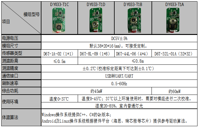 熱成像模組是基于歐姆龍紅外陣列高精度溫度傳感器以及先進軟件算法的非接觸式熱成像技術,可對視場范圍內任何物體進行紅外成像測溫,具備溫度數據實時輸出顯示,通過UART輸出方式, 配合上位機軟件使用。歐姆龍熱成像模組廣泛應用于電子設備開發、PCB 測試、新材料、 供暖施工、非接觸溫度測量、非法侵入、生物探測等行業和領域。