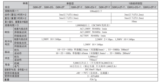 歐姆龍信號(hào)繼電器G6K系列的性能: