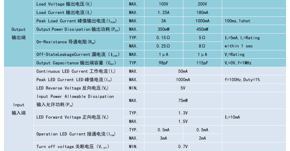 (Relay 光MOS 繼電器 SOP4),Product Model產品型號:BCY215S、BCY217S,Contact Form 觸點形式:1a,Ambient Temperature 25'C,測試環境溫度 25°℃