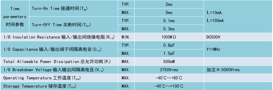 (Relay 光MOS 繼電器 DIP6/SMD6),Product Model產品型號:BCV252G,Contact Form 觸點形式:1a,Ambient Temperature 25C測試環境溫度 25°C