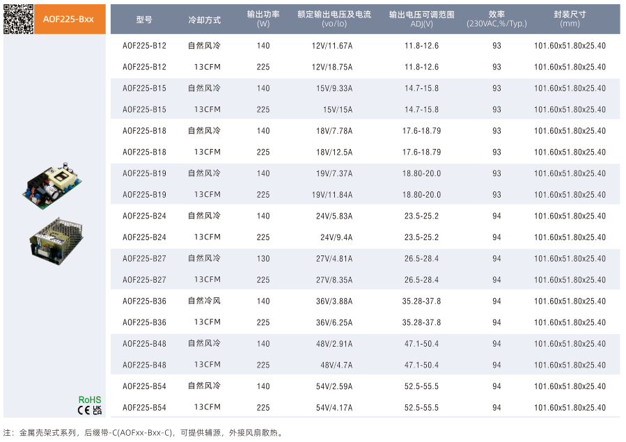 開(kāi)關(guān)電源高功率密度型帶PFC AOF系列(120-750W)