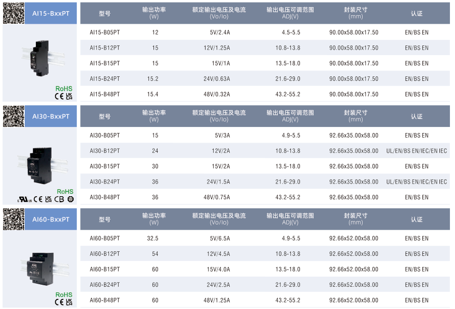 塑料導軌工業電源AI-PT系列(15-150W)