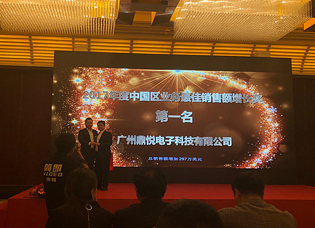 2018年3月15日歐姆龍電子部品(中國(guó))統(tǒng)轄集團(tuán)代理商年會(huì)上頒發(fā)的代理商獲獎(jiǎng)事項(xiàng),而我們廣州鼎悅電子科技有限公司榮獲”2017年度中國(guó)區(qū)業(yè)務(wù)最佳銷售額增長(zhǎng)獎(jiǎng)“。