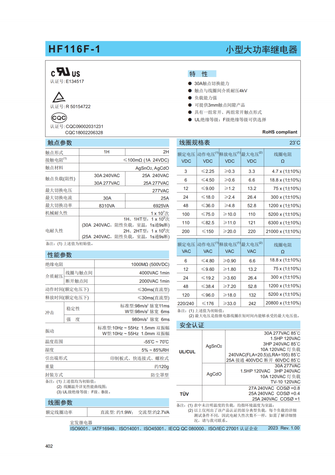 HF116F宏發繼電器