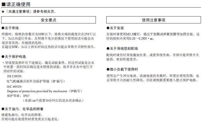 針狀按鈕型有自由位置和動作限度位置、擺桿為動作限度位置時的值。 接點為開路和閉路1ms以內(nèi)。 |