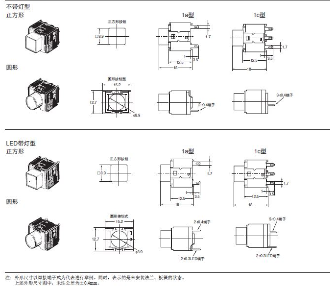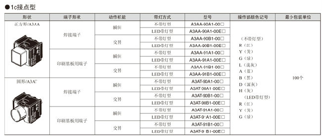 A3A系列 按鈕開關 大容量、緊湊型、小型方體型按鈕開關