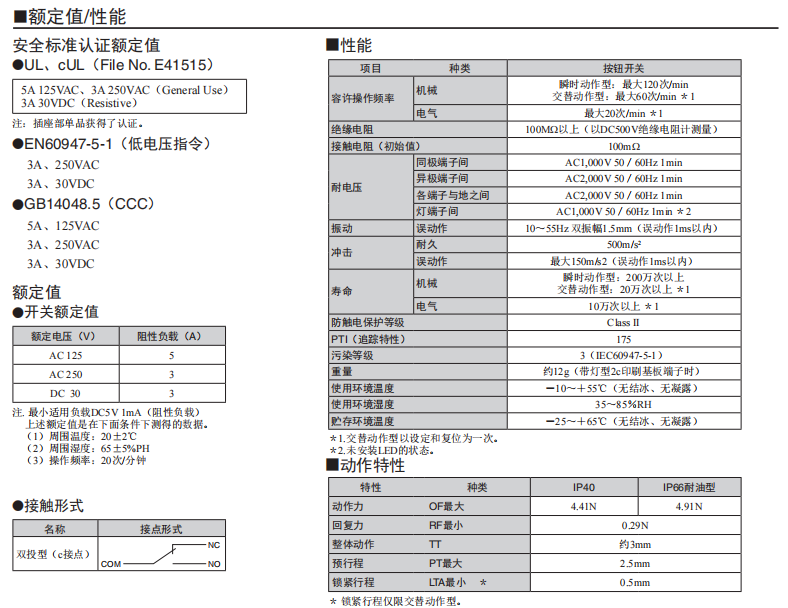額定/性能