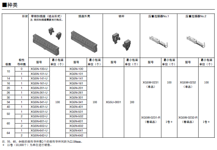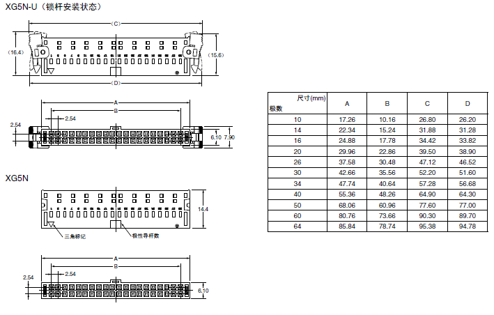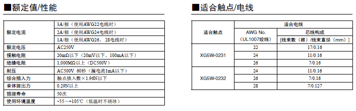 MIL連接器中增加了散線壓著型 雙槽IDC結構通過采用絕緣柱體實現高可靠性、大電流(3A)散線連接能力。 適用于各種外蓋以節省空間和散線終端。 簡易鎖定擺桿,可與無罩插頭XG8B/XG8W(附帶右傾型端子)或盒型插頭XG4C鎖定。 符合UL標準(文件編號:E103202)。(XG5S型除外)