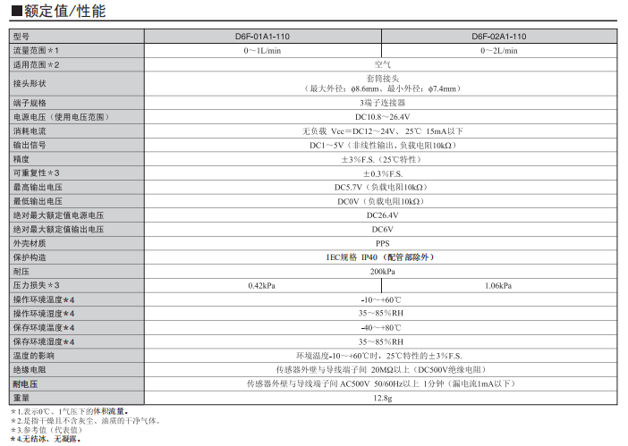 D6F-01A1-110 空氣流量傳感器